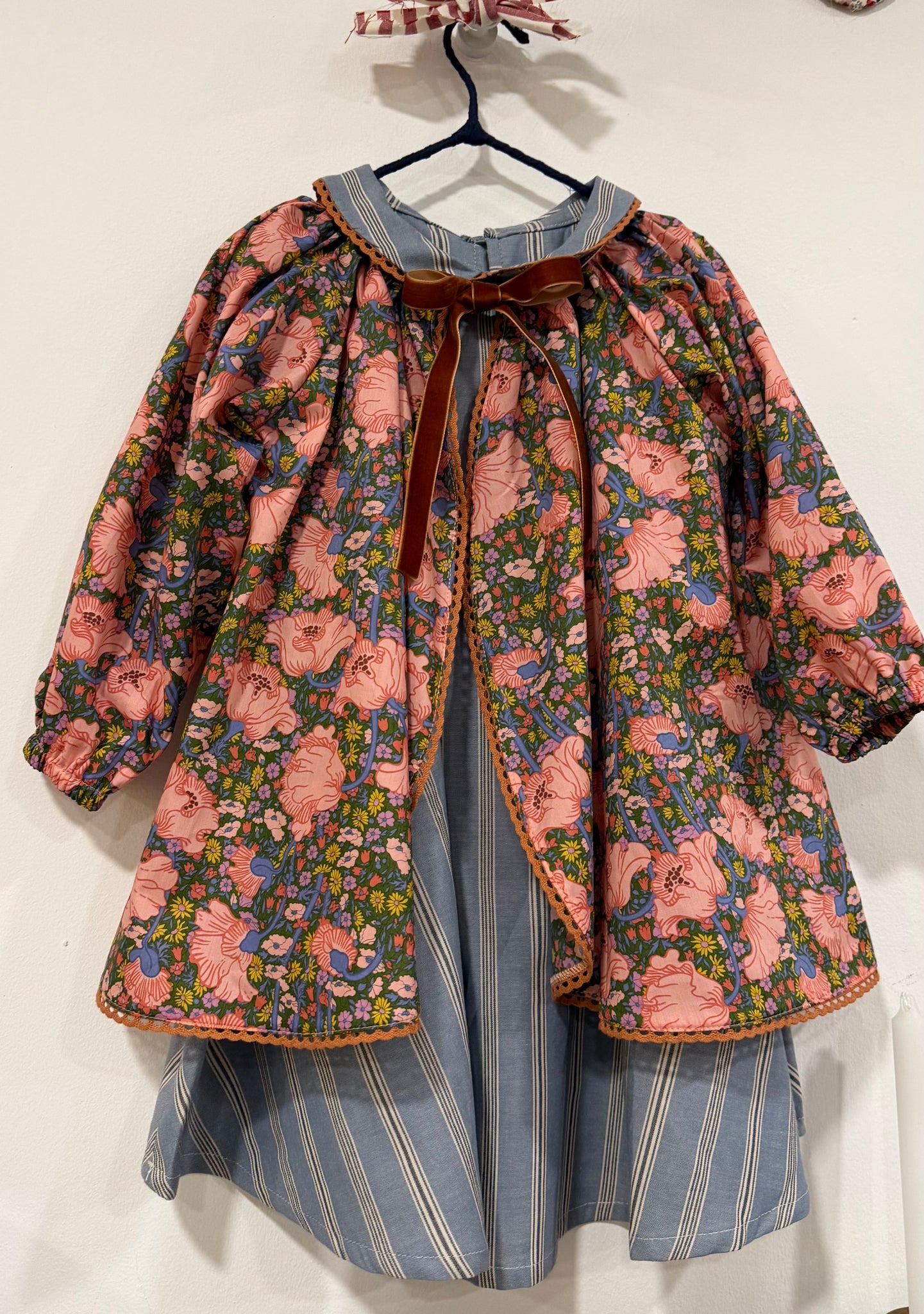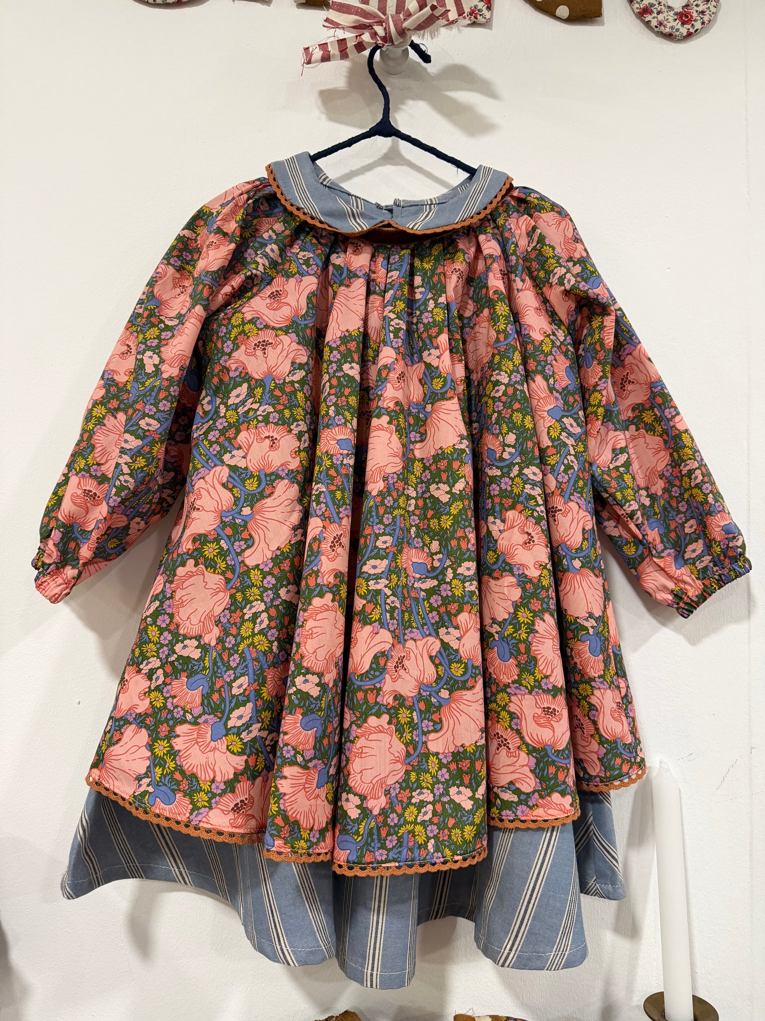 Celia Dress Liberty Clementine Daisy and Blue Stripes