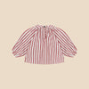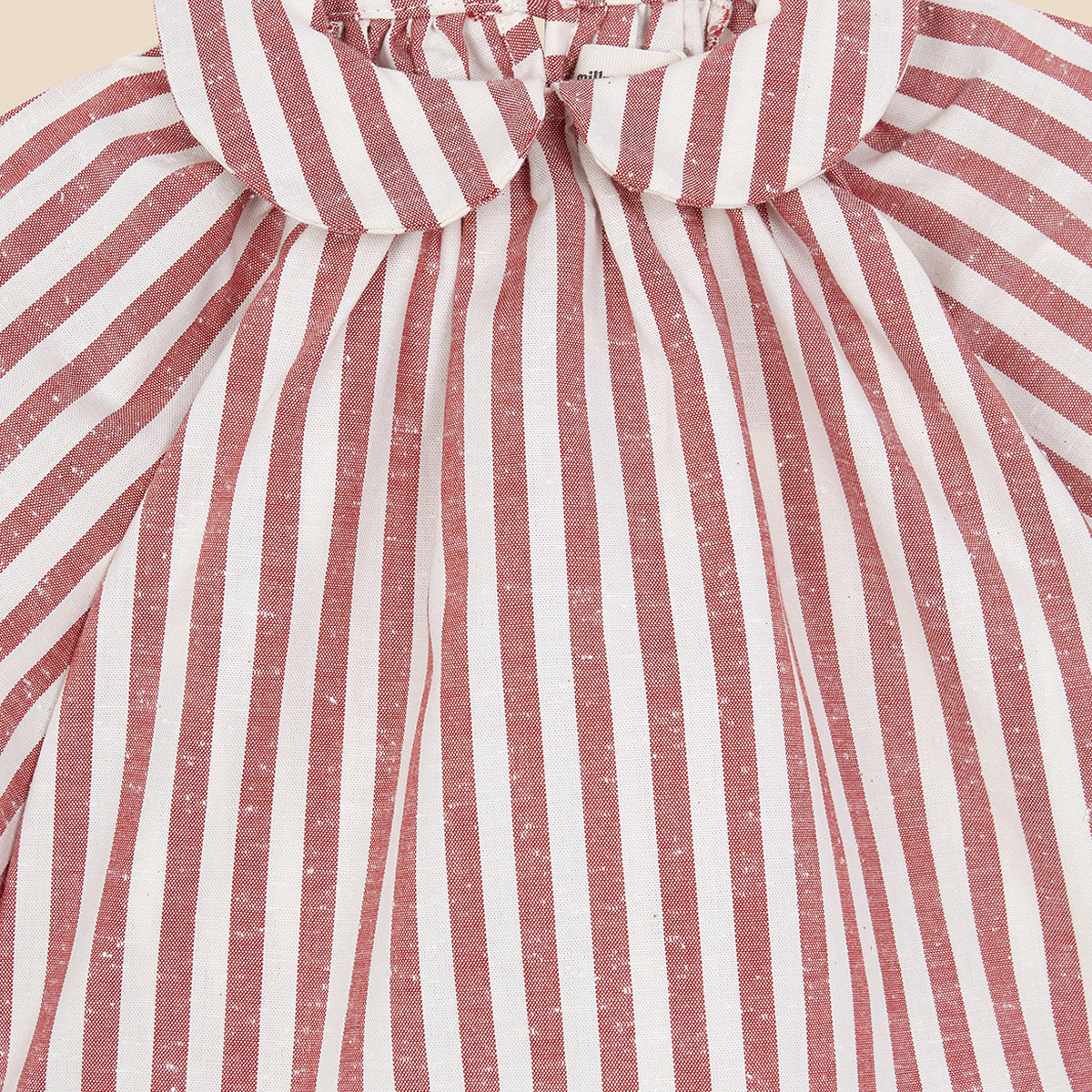 Elegant long-sleeved blouse crafted from our soft organic cotton-linen blend with bordeaux and ecru stripes.