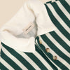 Our Long Polo Forest Stripes is crafted in soft brushed fleece cotton with forest green and ecru stripes, designed for comfort and a timeless sporty look.